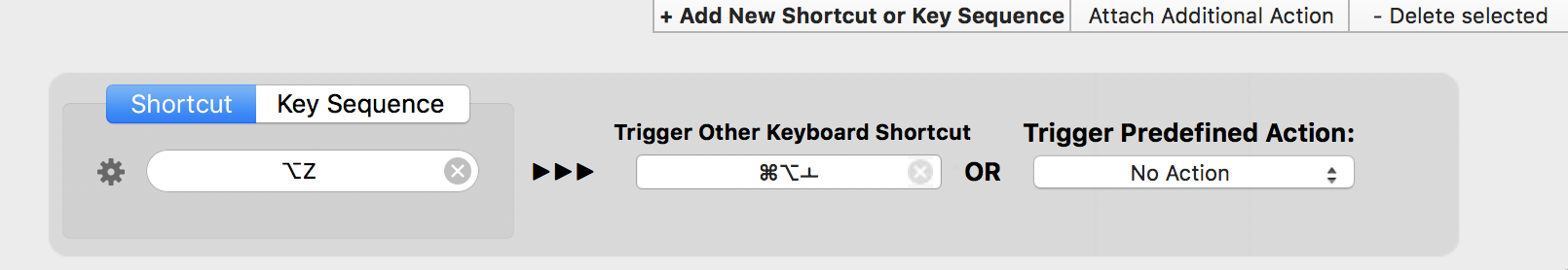2. 사용할 단축키를 좌측 Shortcut 아래에 입력한다. 나는 왼손 검지로 누르기 좋은 Option+Z를 사용한다.