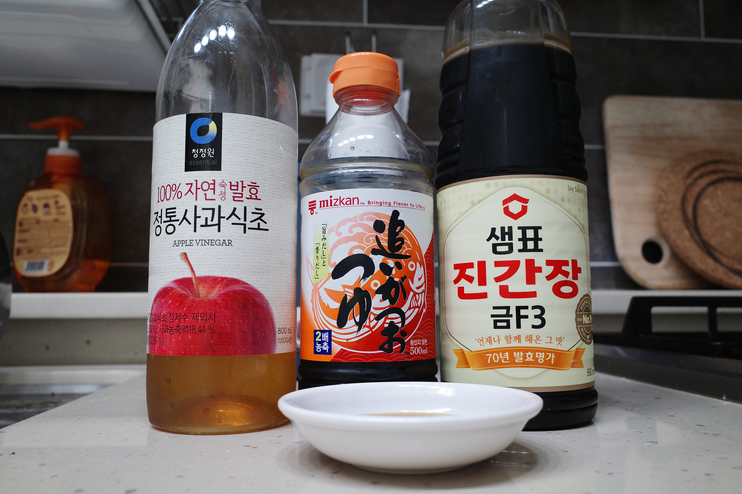 나만 알고 있기 아까워서 공개하는 만두 간장 레시피.. 미즈칸 쯔유 30, 진간장 30, 발효식초 20(꼭 쿰스쿰스한 향이 나는 발효식초로!), 설탕 20 !!!
