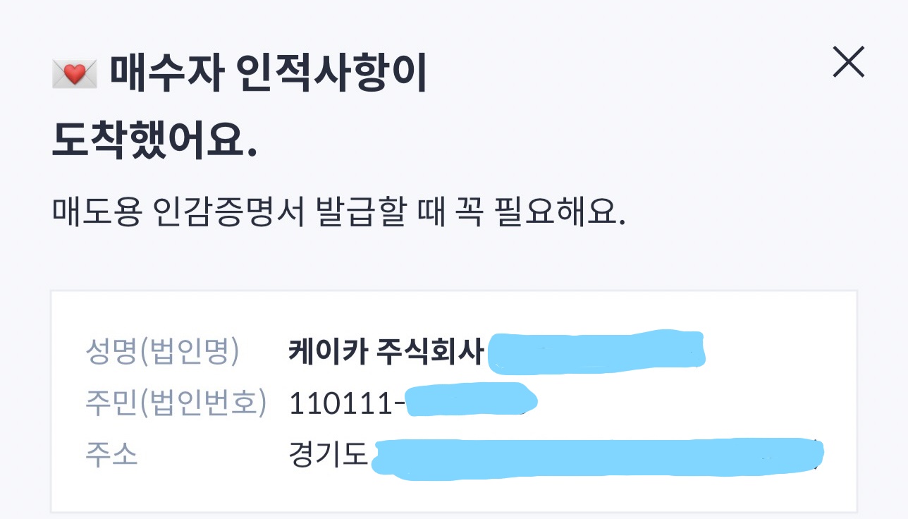 매도용 인감증명서를 뗄 때는, 이렇게 매수자의 인적사항을 적게 되어있는데