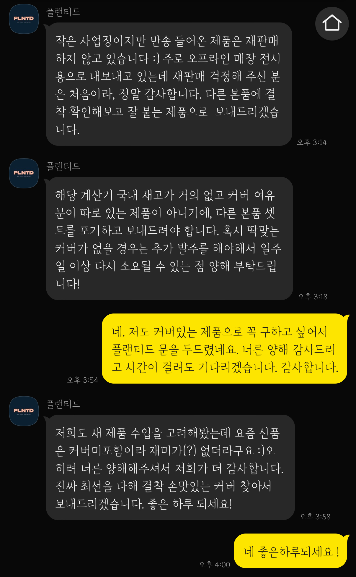 본품까지 전체 다 다시 보내주겠다... 내가 원하면 커버만 따로 보내주겠다...