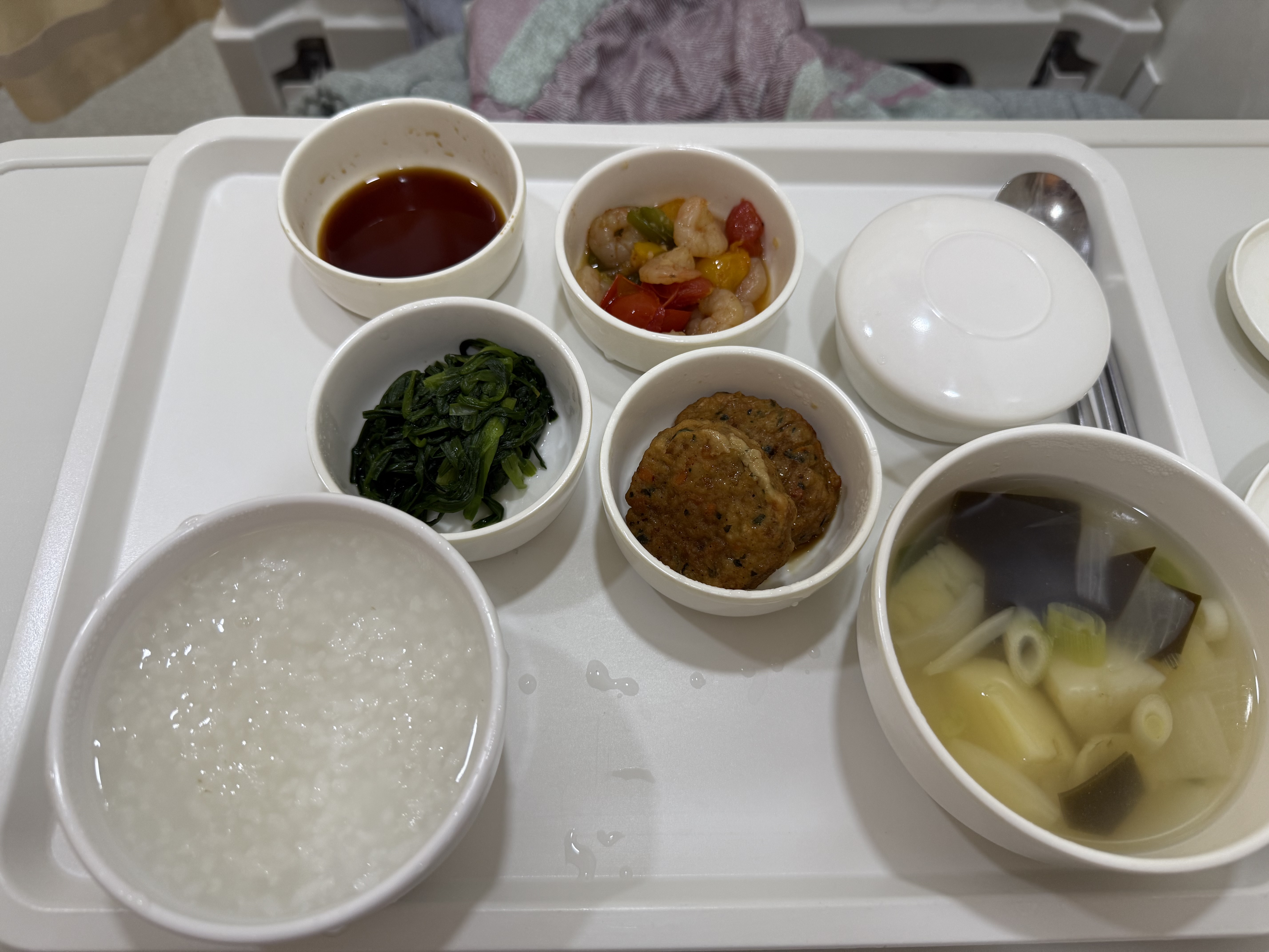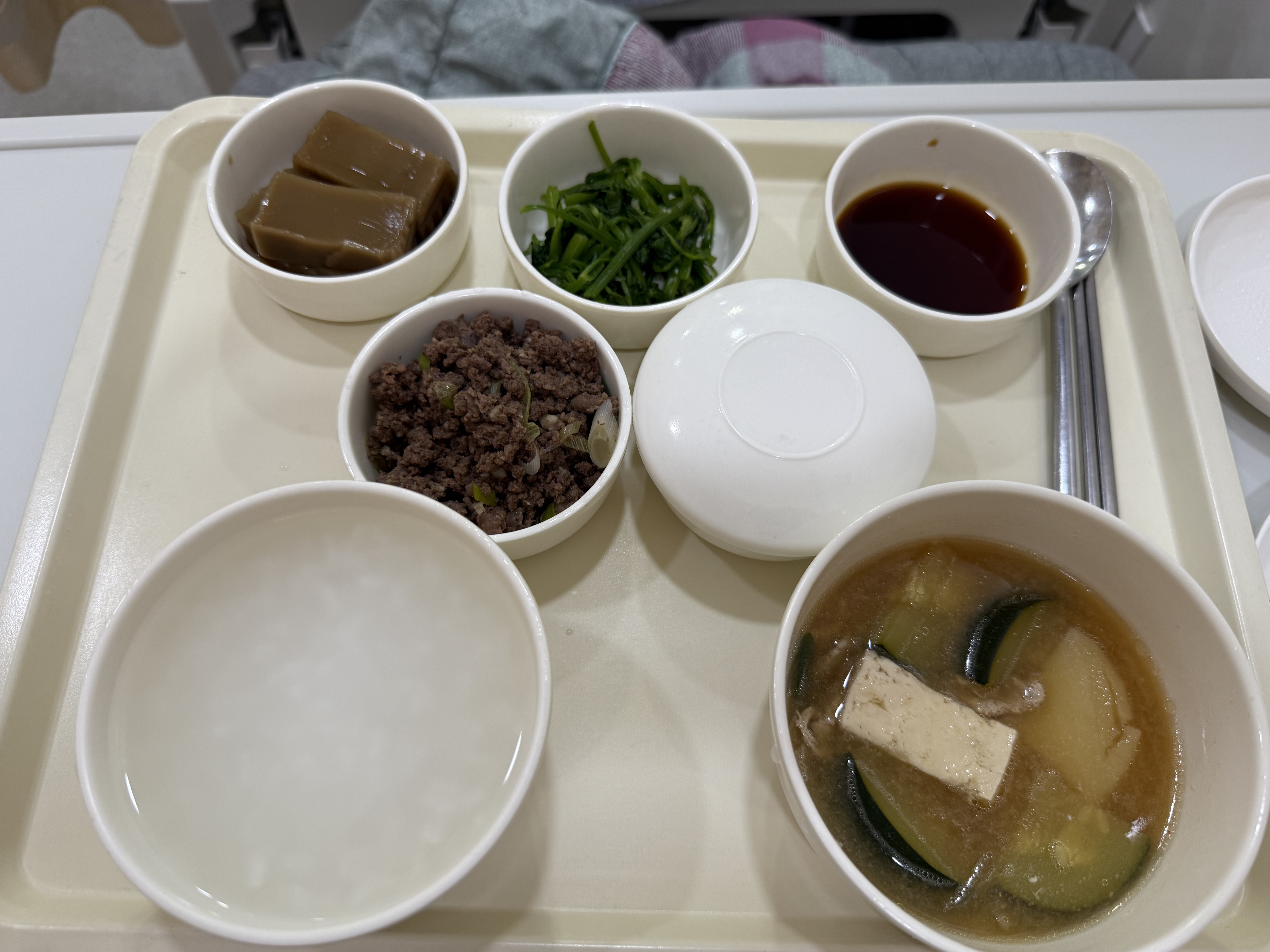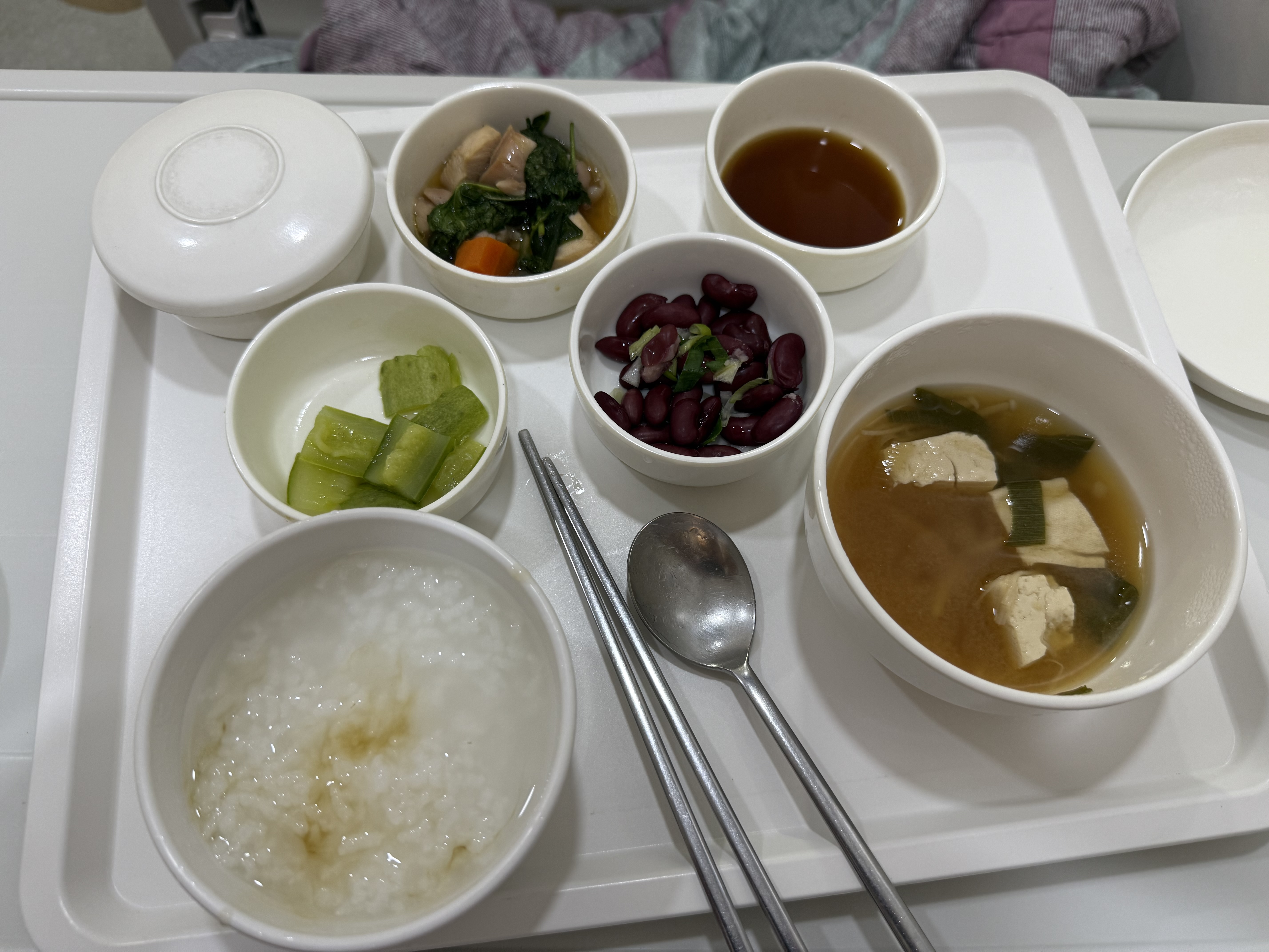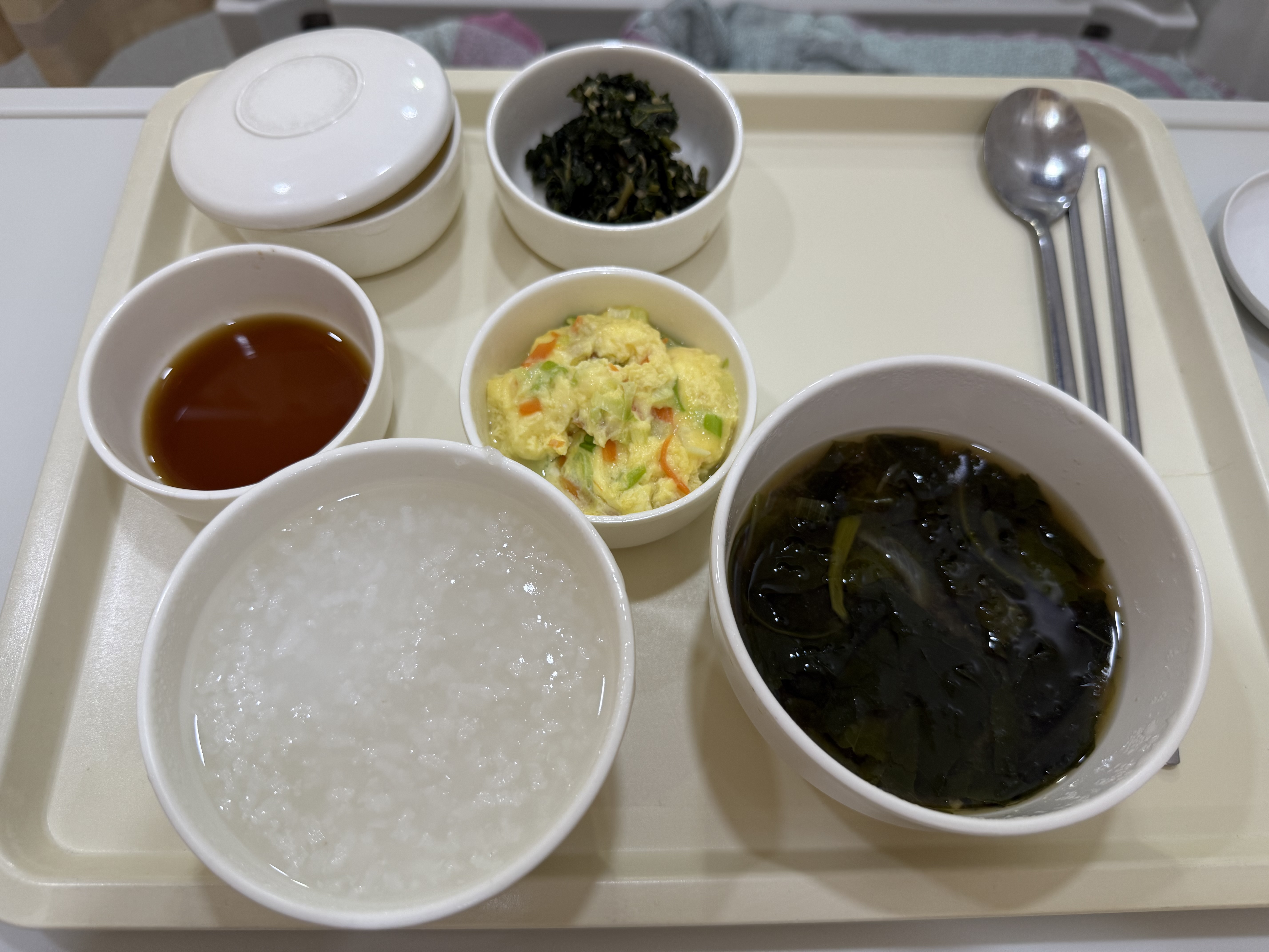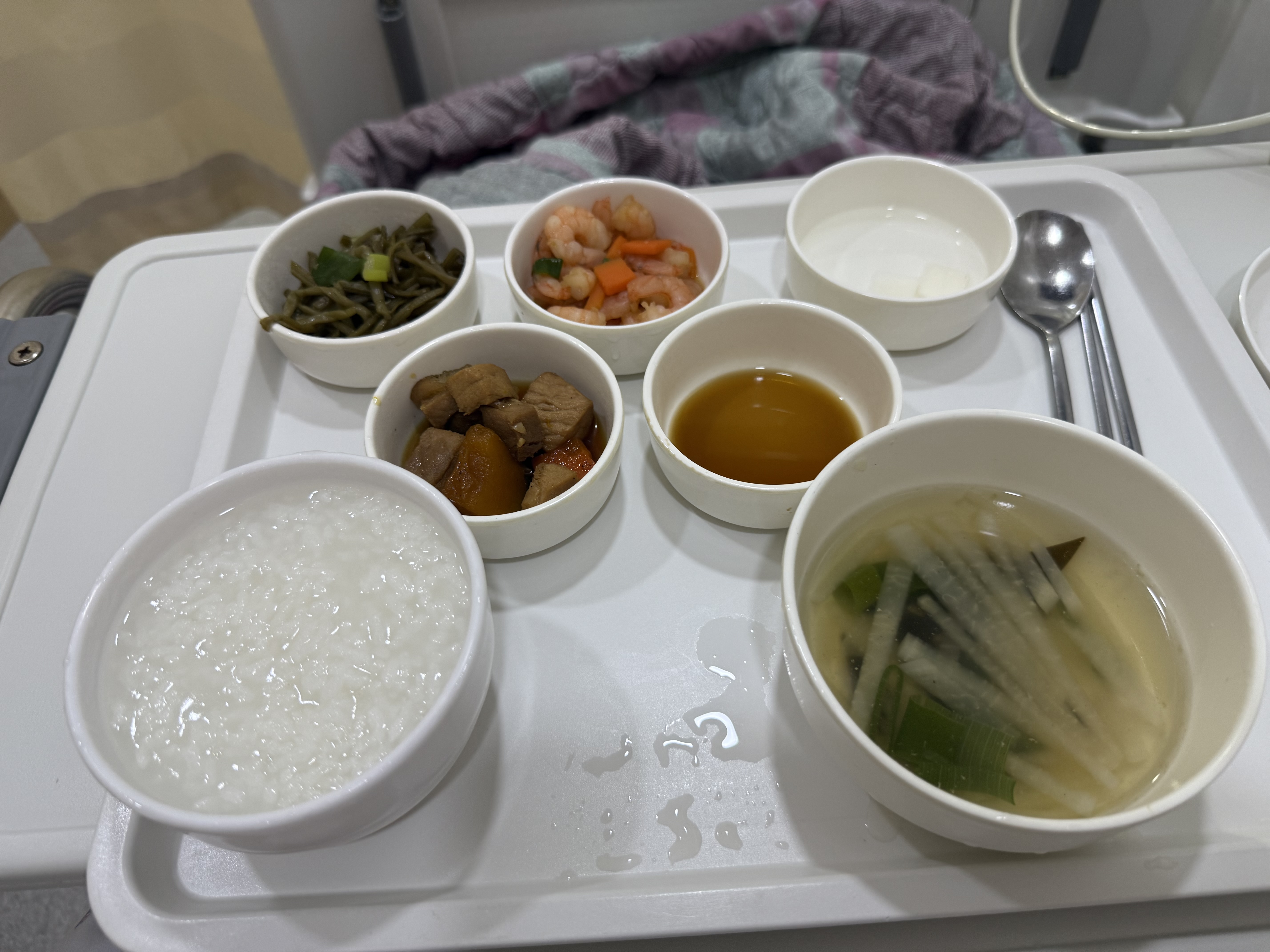 다음 날, 첫 식사가 나왔다. 슴슴한 저지방식 죽 식사가 나오는데, 형형색색의 싱싱한 재료들이 비좁은 병상 테이블에 제법 풍성하게 오른다. 내가 평소에 좋아하지 않는 메뉴임에도 월요일부터 제대로 식사를 하지 못한 몸뚱이가 자동으로 움직여 음식을 게걸스럽게 먹어치운다.