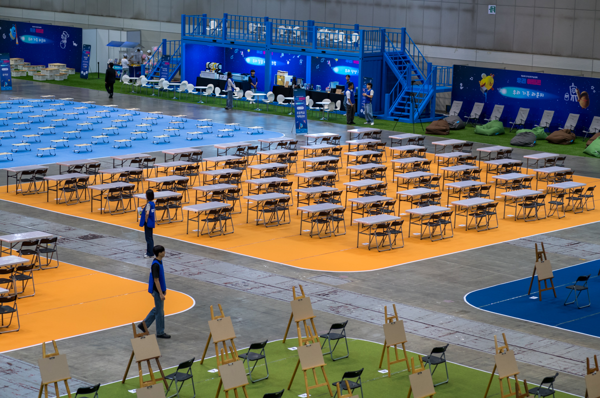 우리은행이 주최하고 문체부, 교육부에서 후원하는 미술대회 현장,