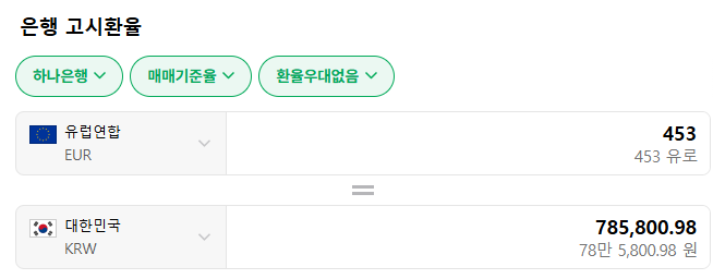 25년 12월 14일 기준 환율우대 없는 매매기준율 기준, 78.5만 원.